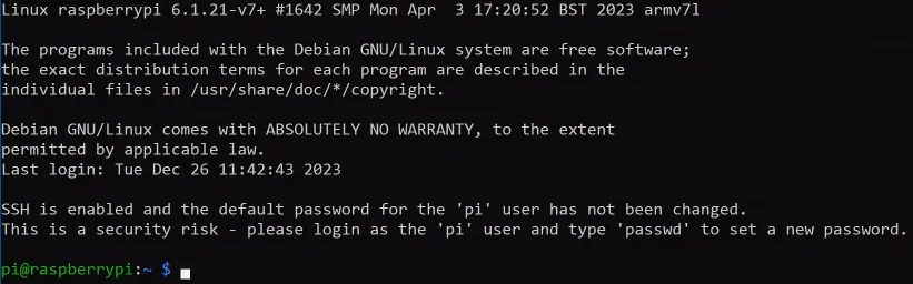 Wenn der Login erfolgreich war, kann man sich via SSH auf dem Pi genauso gut bewegen wie mit Tools Putty oder MobaXTerm.