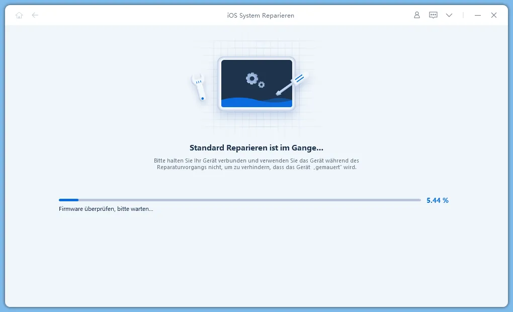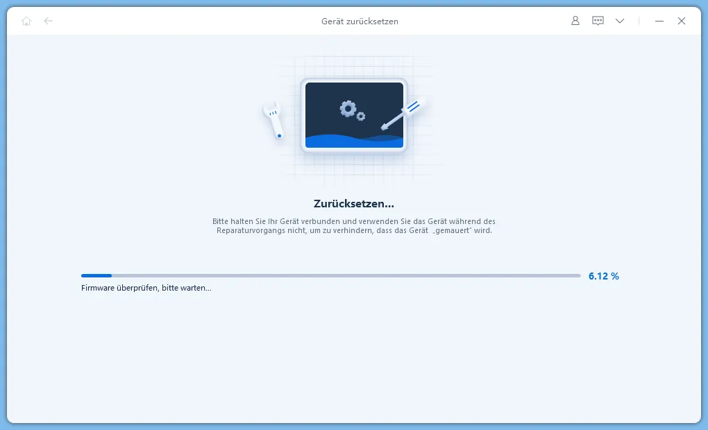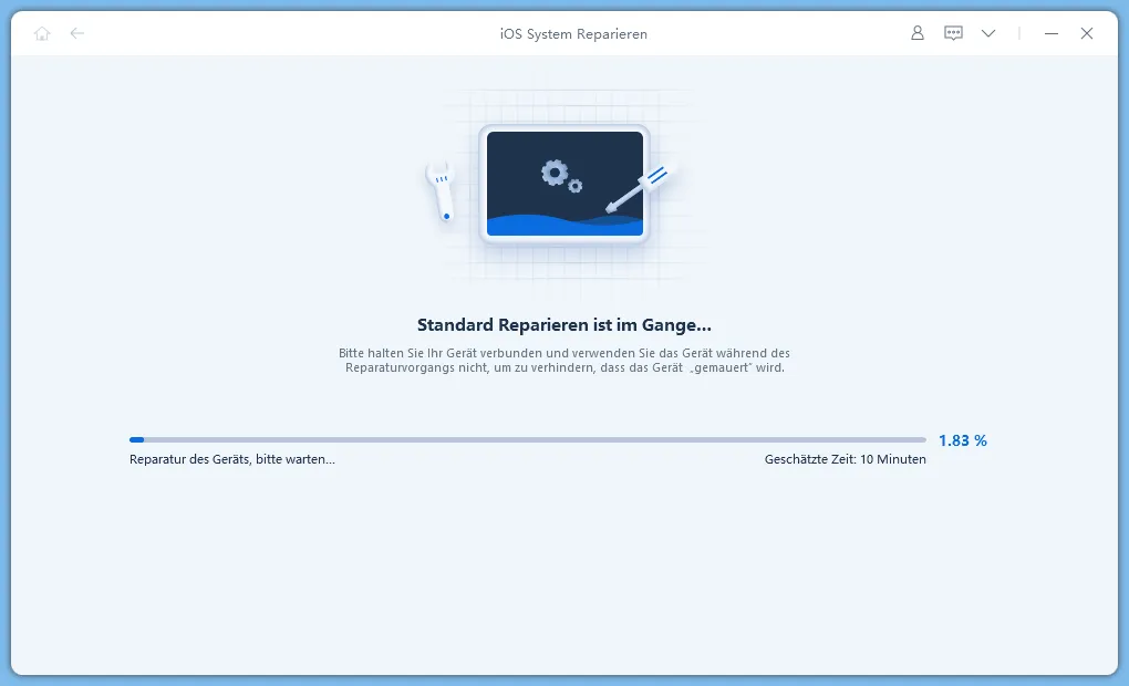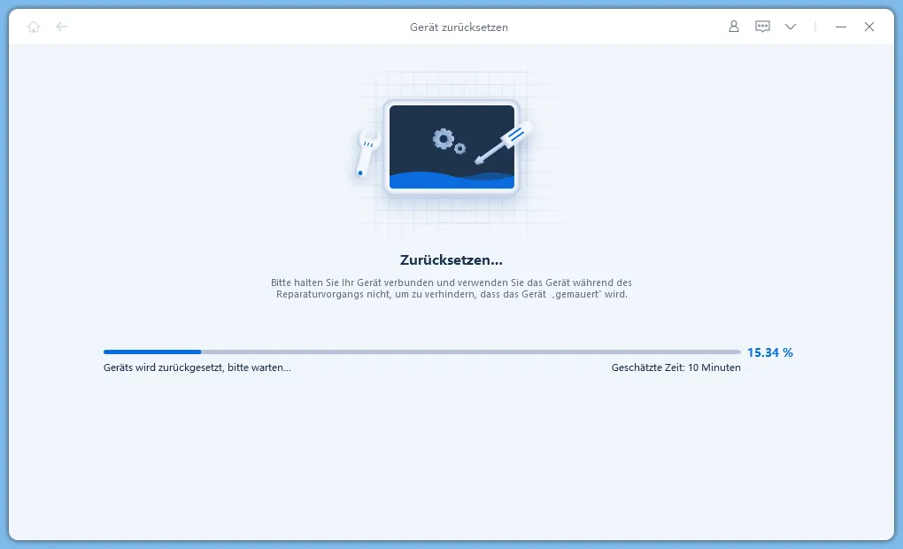 Nach dem Download läuft die Standardreparatur weitestgehend automatisch ab, dabei wird das Gerät ab und zu neu gestartet.