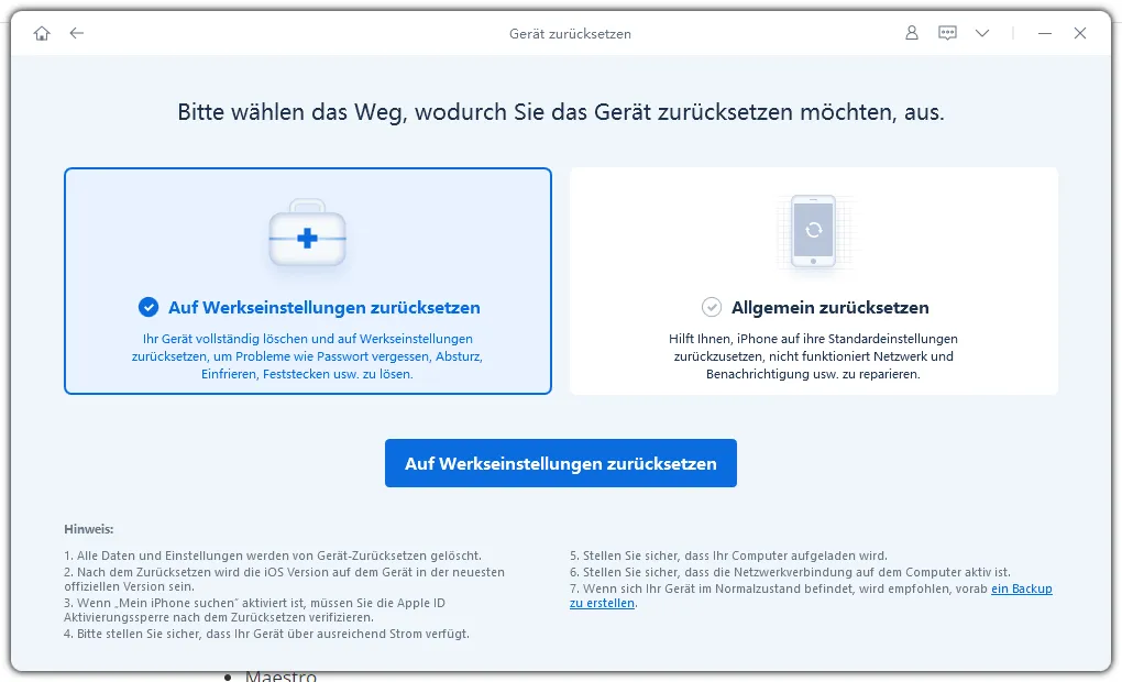 Dein iPhone, iPad oder iPod touch kannst du mit diesem Tool auch ohne iTunes zurücksetzen und bist somit deutlich unabhängiger von externen Apple Services.