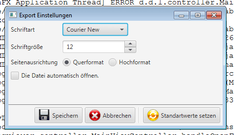 Einstellungen des Exporters