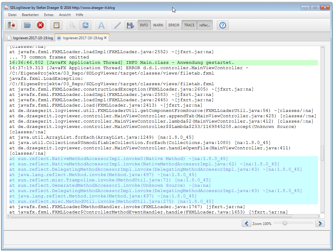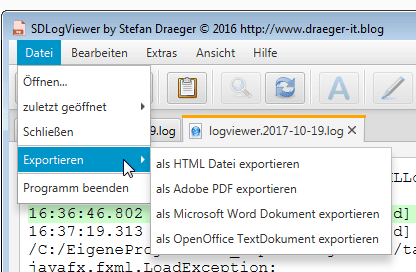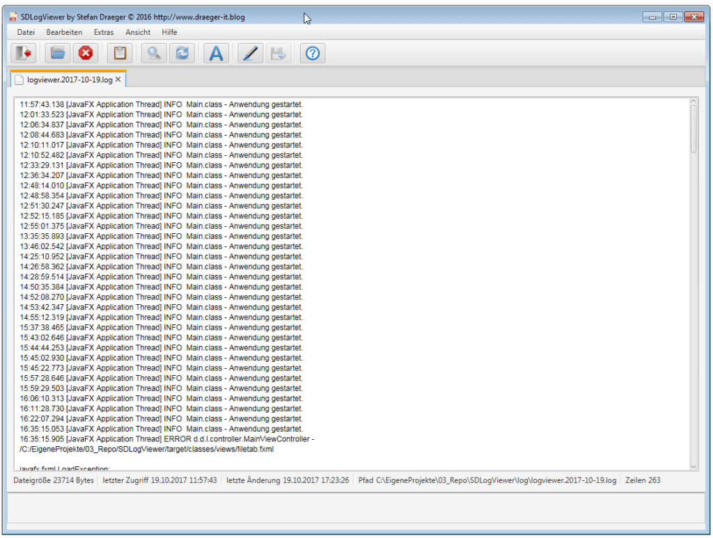 Mit dem Tool SDLogfileViewer kann man große Logfiles betrachten und bestimmte Passagen hervorheben lassen.