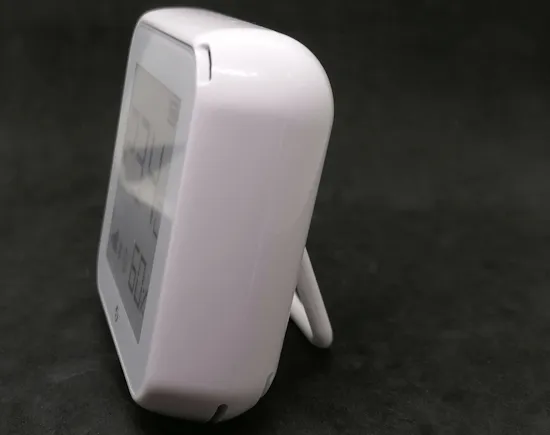Das Gerät verfügt über ein E-Paperdisplay und daher ist der Betrieb über eine Batterie sehr gut möglich. Ein E-Paperdisplay wird im Allgemeinen nur partiell aktualisiert und benötigt nach dem neuen Zeichnen keinen Strom. Des Weiteren lässt sich dieses sehr gut von der Seite ablesen.