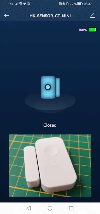 In der Kachel siehst du oben rechts den aktuellen Status des Sensors.