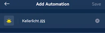 Für das Steuern des Kellerlichtes benötige ich zwei smarte Szenen, eine um das Licht zu aktivieren und eine weitere um diese wieder zu deaktivieren.