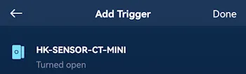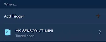 Der Tür-/Fenstersensor hat zwei Status, einmal wenn dieser geöffnet und geschlossen ist. Von diesen wählen wir hier zunächst „Turned open“ aus.