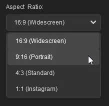 In meinem Fall möchte ich ein YouTube Short für ein kleines aktuelles Projekt erstellen und wähle hier das Format 9:16 aus.