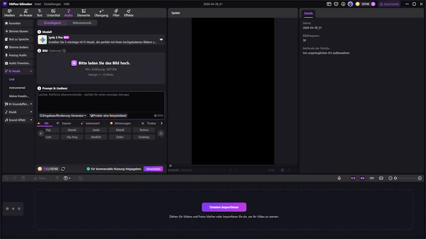 Der AI Musik Generator in HitPaw Edimakor ist kein Ersatz für professionelle Musikproduktion.