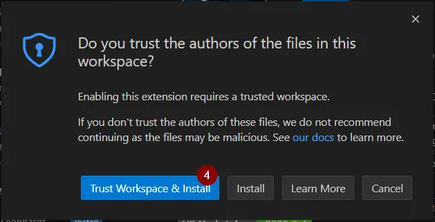 Dem ganzen muss man noch zustimmten und die Installation startet sobald man auf „Trus Workspace & Install“ (4) geklickt hat.