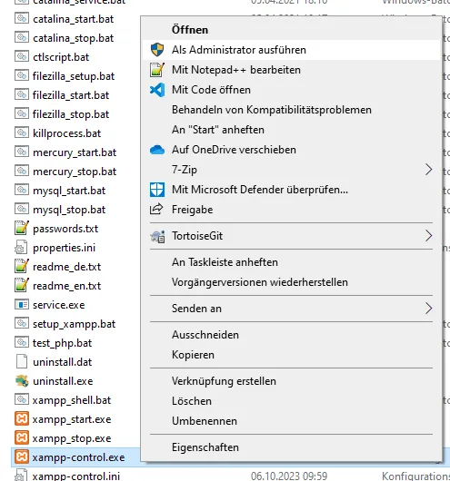 • Fehler „Cannot create file“ beim Beenden von XAMPP