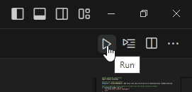 Aus Visual Studio Code kannst du das Skript per klick auf „Run“ oben rechts das Skript ausführen.