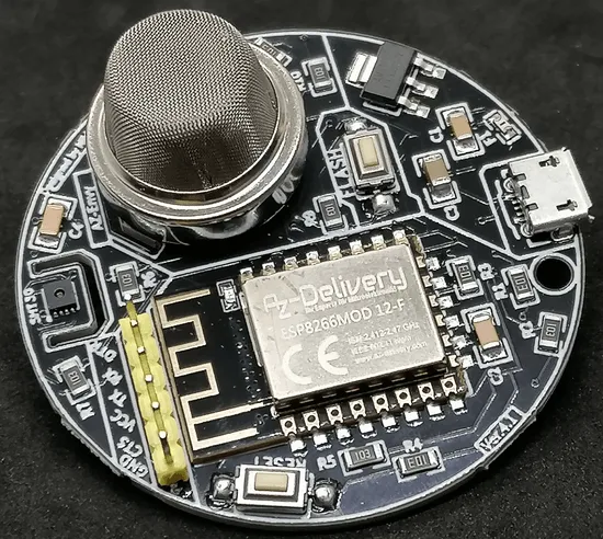 Der AZ-Envy ist ein Board mit einem ESP8266MOD-12-F Mikrocontroller sowie einem Luftqualitätsmesser MQ-2 sowie einem Luftfeuchtigkeitsmesser SHT30.
