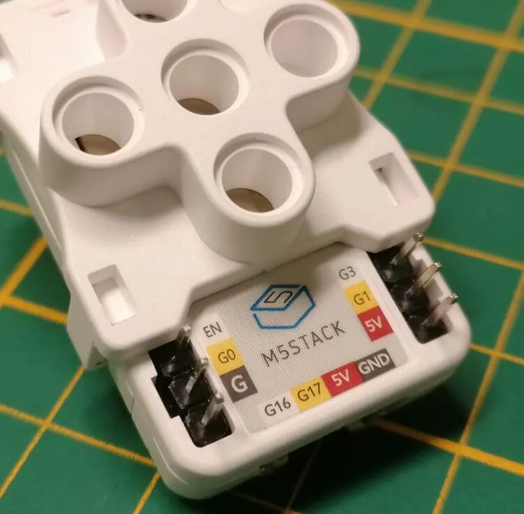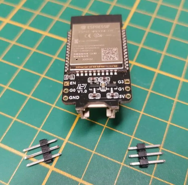 Damit wir die Camera UNIT über den ESP32 Downloader programmieren können, müssen wir zunächst 2 3-fach Stiftleisten auf die Platine löten.