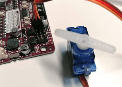 Über die 4 Stiftleisten kannst du einen Servomotor anschließen und steuern.