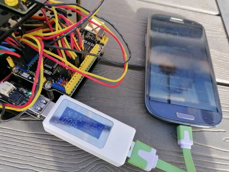 Ich habe das Kit mit einer Powerbank betrieben, soweit klappt auch alles. Nun eine Frage: Lässt sich die Stromversorgung zum Laden über den USB-Anschluss so abkapseln, dass die Powerbank nur Strom an den Arduino liefert? Sodass nur erzeugter Strom für den Ladevorgang verwendet wird und die Powerbank länger für den Betrieb des Arduinos hält?