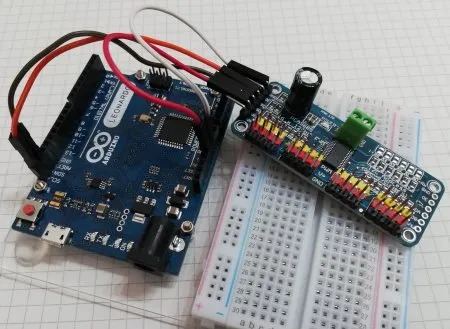 - 1x PWMServoDriverShield – Typ „PCA9685“*,