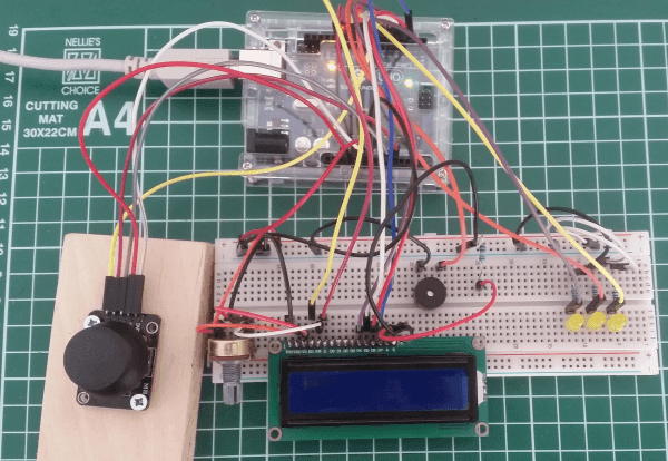 Es soll noch keine Software laufen, sondern das Display, der Joystick sowie der Buzzer und die LEDs sind mit dem Arduino verbunden.
