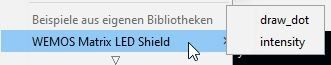 Für den nachfolgenden Quellcode wird die Bibliothek WEMOS Matrix LED Shield Arduino Library benötigt, welche vom GitHub Repository geladen werden kann.