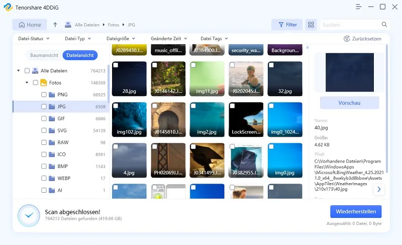 Schritt 3: Vorschau und Wiederherstellen von Dateien