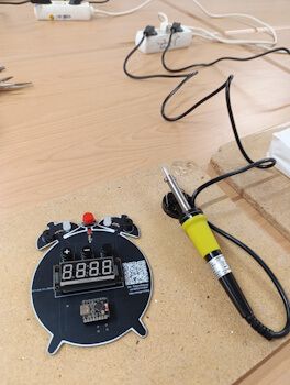 Am ersten Workshoptag stand das Löten der Timerschaltung auf dem Programm. Da die meisten Teilnehmer keinerlei Vorkenntnisse im Löten hatten, habe ich mir die Zeit genommen, die wichtigsten Grundlagen zu erklären – insbesondere worauf man bei bestimmten Bauteilen wie LEDs achten muss. Für diesen Teil des Workshops haben wir bewusst 2,5 Stunden eingeplant, was sich als genau richtig erwiesen hat: Alle kamen gut mit und wir waren pünktlich fertig.