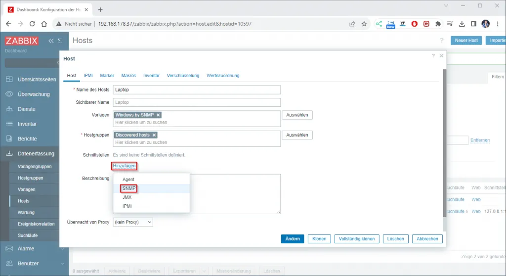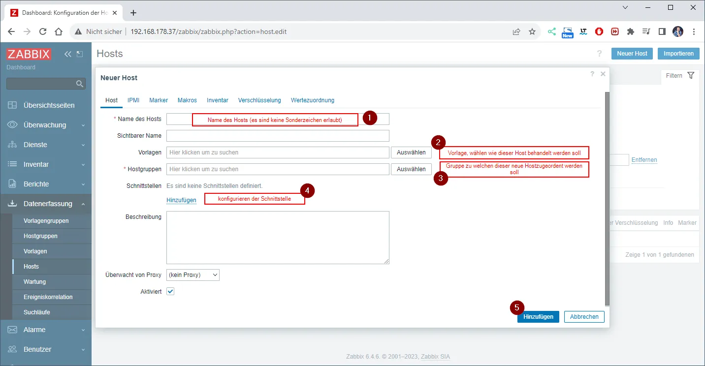 Hinzufügen eines neuen Host in Zabbix