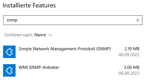 Als Erstes möchte ich einen Windows 10 Laptop überwachen, dazu muss man zunächst die beiden Pakete für SNMP installieren und vor allem konfigurieren.