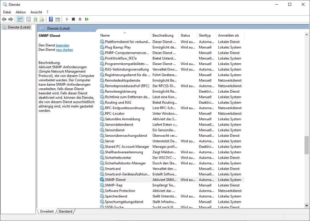 SNMP unter Windows 10 für Zabbix konfigurieren